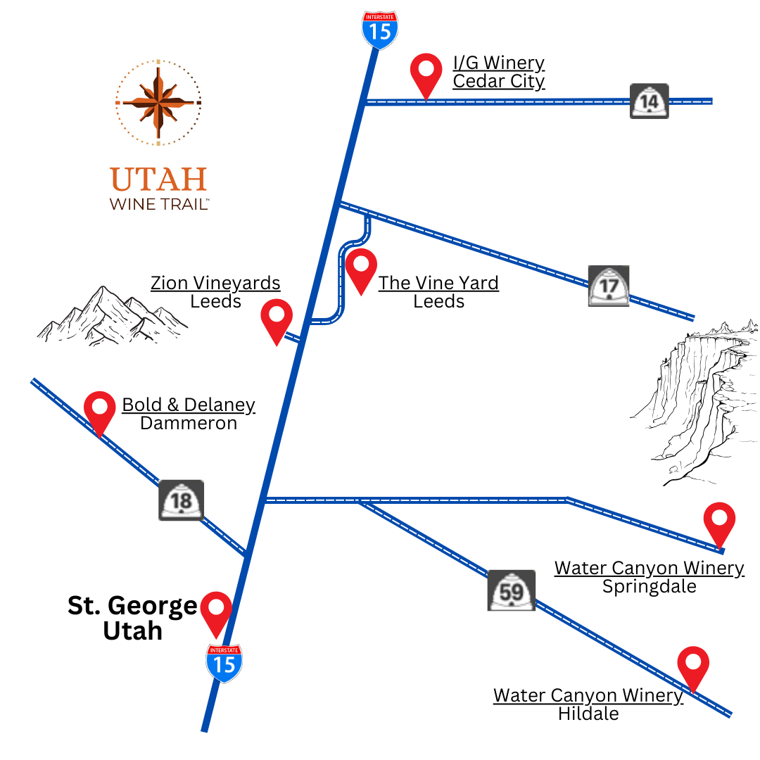 Southern Utah’s Wine Trail strings together small, character-filled wineries within about an hour of St. George, with red-rock views between every stop. Zion Vineyards sits just outside Leeds near the gateway to Zion National Park, pouring estate-style reds like Cabernet Sauvignon, Zinfandel, Tempranillo and Petit Syrah alongside bright whites such as Grenache Blanc and Sauvi-gnon Blanc. (zionvines.com) IG Winery is tucked into downtown Cedar City, an urban tasting room where all wines are crafted locally, using grapes sourced from Utah, Washington, Oregon and California, with rotating red and white tasting flights that make it easy to find a favorite. (igwinery.com) Water Canyon Winery, in Hildale with an additional presence near Zion, specializes in “natural” wines – no added sulfites or preservatives – focusing on fruit-forward reds like Cabernet Sauvignon, Malbec and Tempranillo, blends such as their 333 and Field Blend, and sea-sonal rosé or Muscat releases, often paired with a full café menu and live-music evenings. (Water Canyon Winery) Together, the trail gives guests an intimate, small-batch wine scene instead of big-box tasting rooms. (Travel Monitor)
